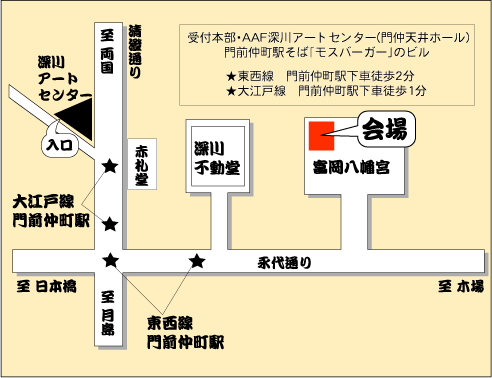 まずは当日「AAF深川アートセンター」(門天ホール)で受け付けをして下さい。深川ならではの超プレミアなプレゼントを差し上げます。(数に限りがありますのでご了承ください。)