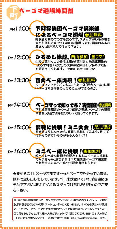 6月13日のベーゴマ道場はアサヒアートフェスティバル=深川アートセンター=の協力で行なわれます。